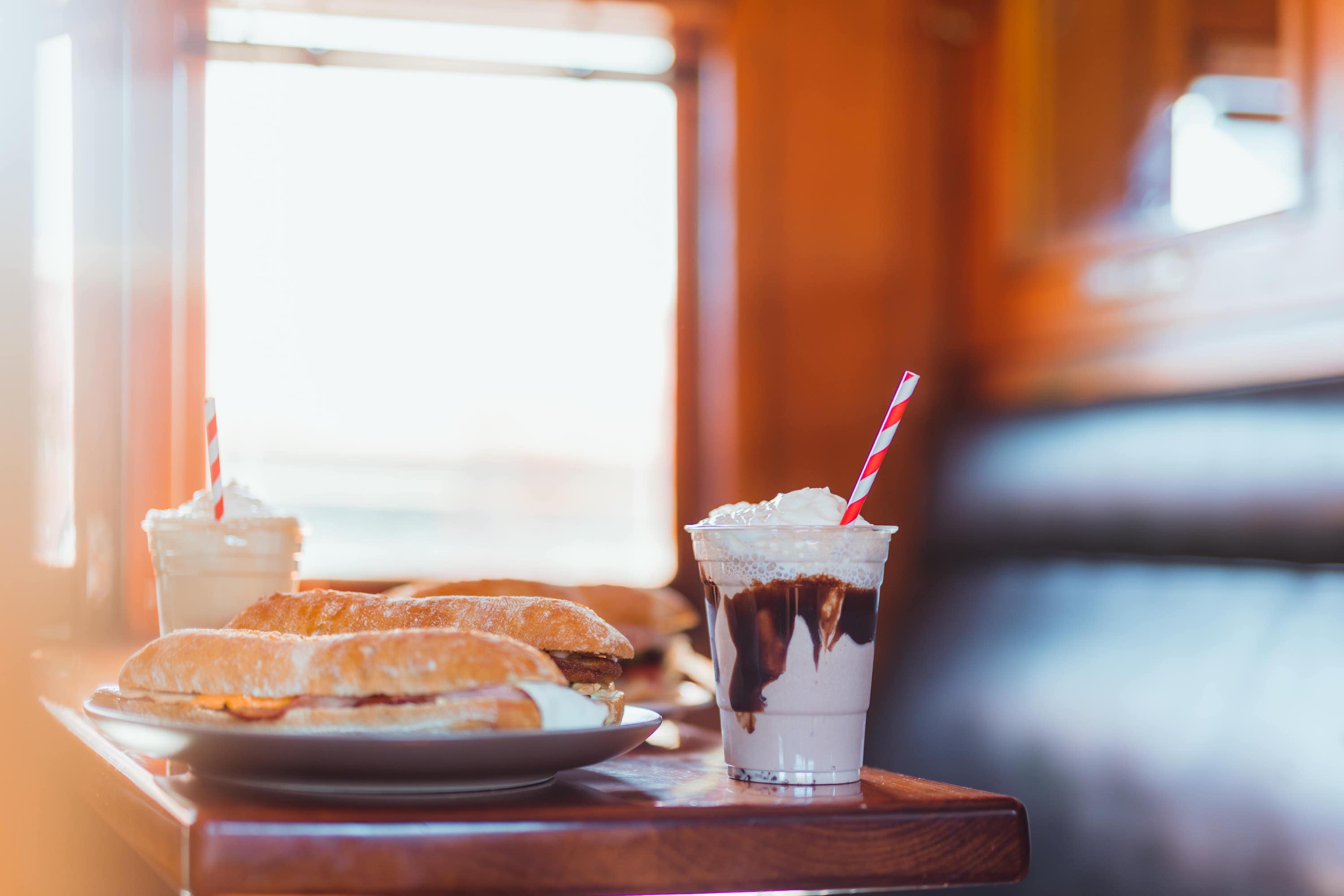 We have outdoor seating in our front courtyard which is also pet friendly. Indoor compartment booth seating is available on our restored 1920’s Victoria train carriage – the Cake.Biz Express. Each compartments seats 4-6 people. Please note that due to the narrow walkway of the train that it is not wheelchair or pram accessible.