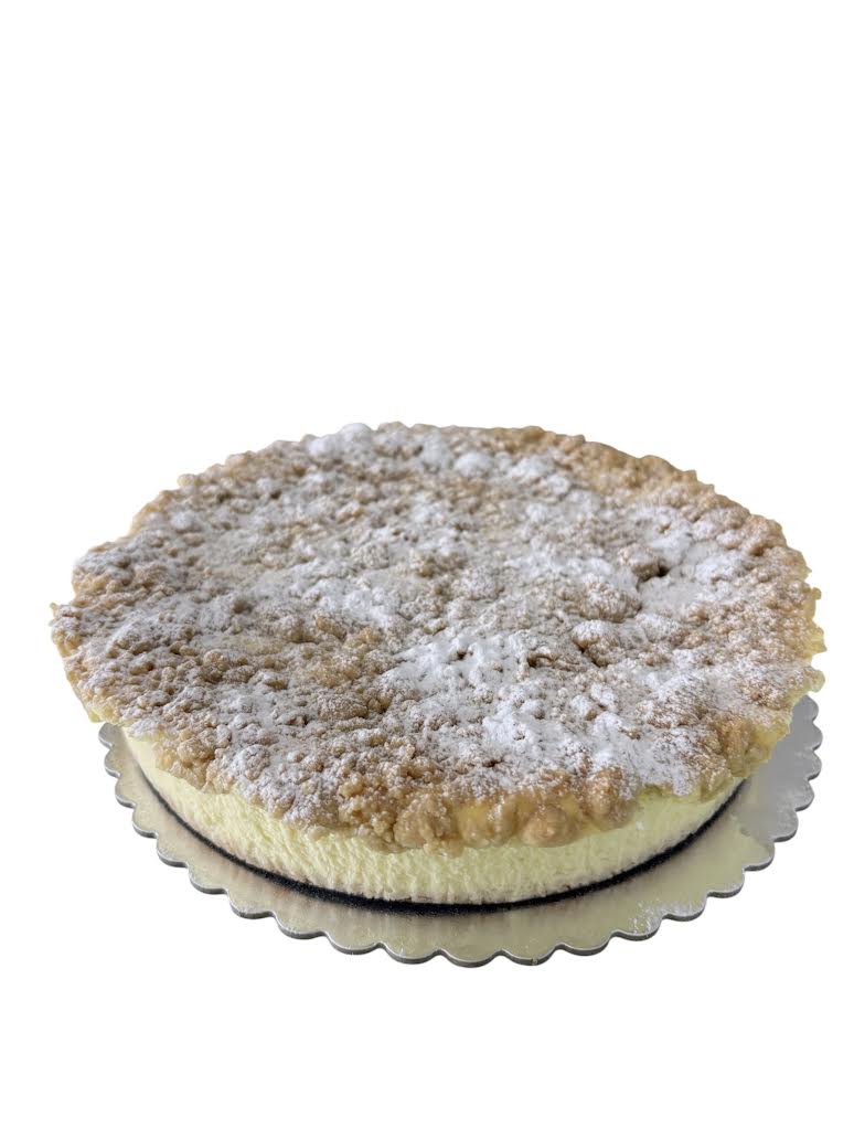 A ricotta cheesecake with a hint of lemon, baked with a biscuit crumble on top.