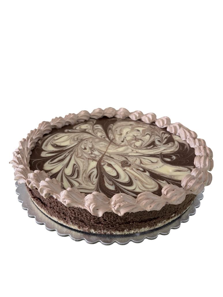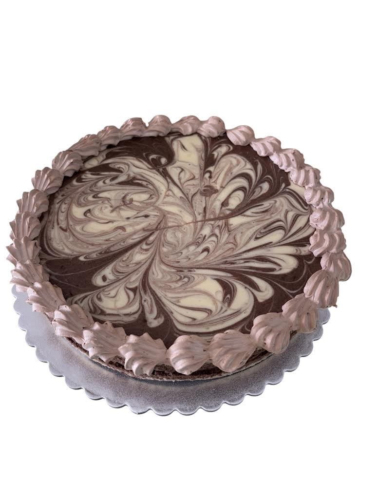 A delightful combination of New York Cheesecake swirled with Chocolate Obsession.